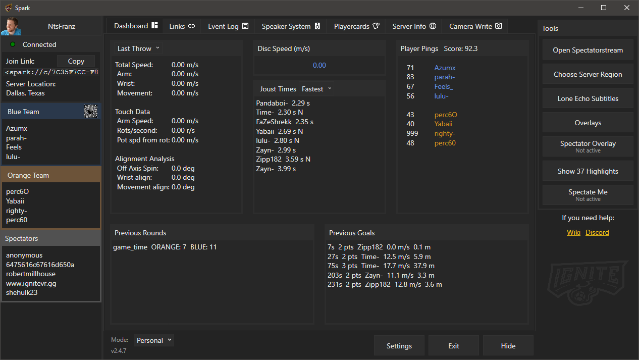 Spark is the main app that is used for stats collections and in game data tracking. It also allows for users to use replay viewer files to simulate replays for a game with no internal replay system. We were able to do this with simple api access from the games dev team.